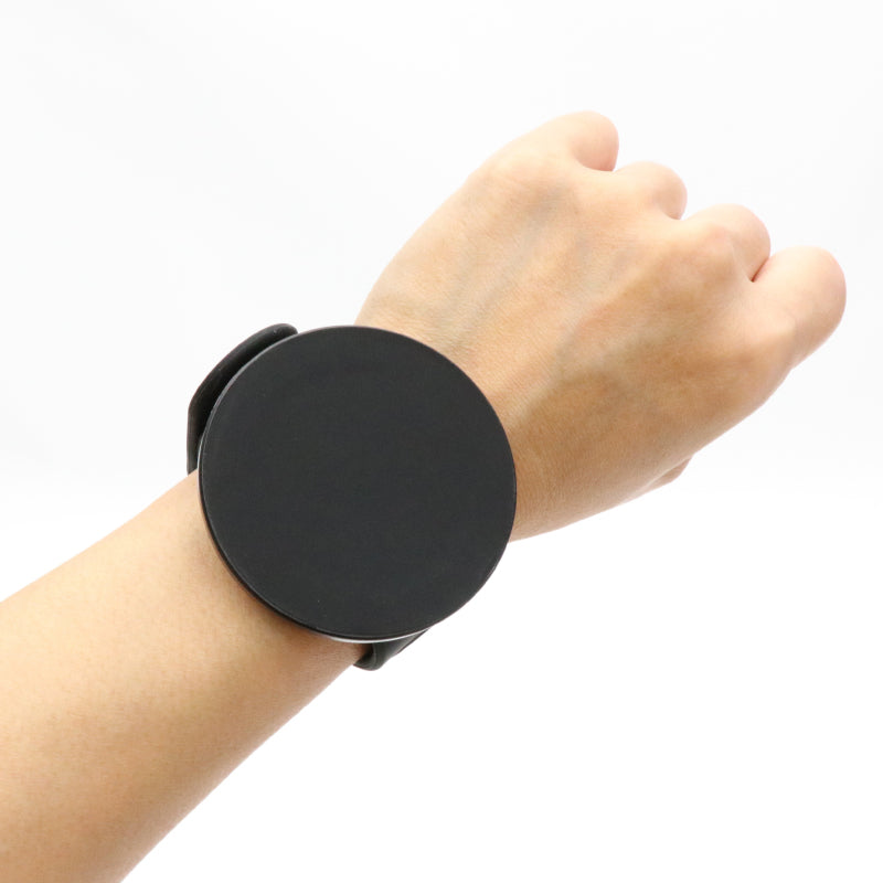 時計のように腕に取り付けたり、ベビーカーや自転車、壁に取付けたり、工夫次第で簡単取付