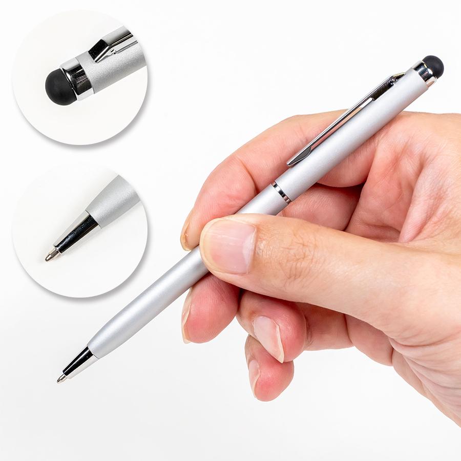 スリムで手帳などにも挟みやすいタッチペン付きボールペン。ふたつの機能を1本で兼ねられる省スペースな筆記具です。胸ポケットにもすっきり収まり、商談時などにも便利。ビジネスシーンに相応しい高級感のあるルックスで、コスパ抜群の商品です。