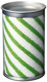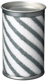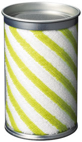 中身が見えるクリアな筒形透明ケースに、ストライプ柄のキッチンクロスが入ったノベルティです。カラフルな10色アソートで、そのまま店頭に置いても映えるアイテムです。お急ぎの方におすすめです。