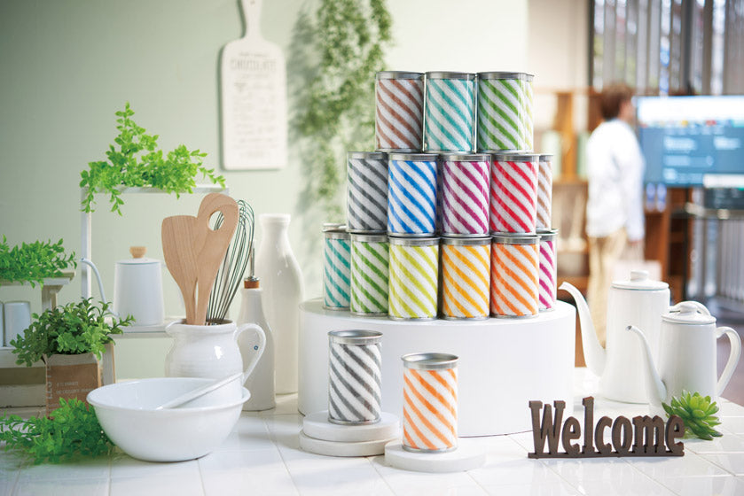 積み上げやすい筒形パッケージ入りのカラフルなキッチンクロス