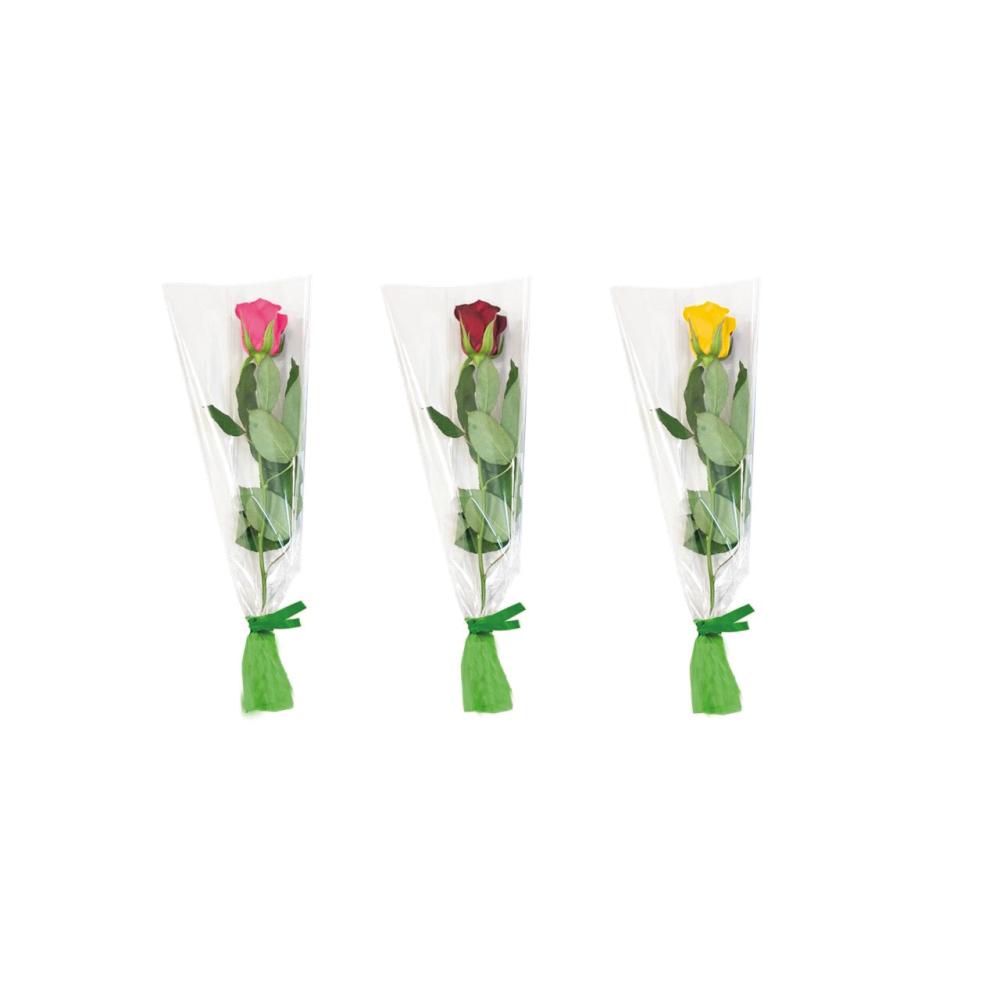 暖色カラーのバラを1本巻きブーケにしました。