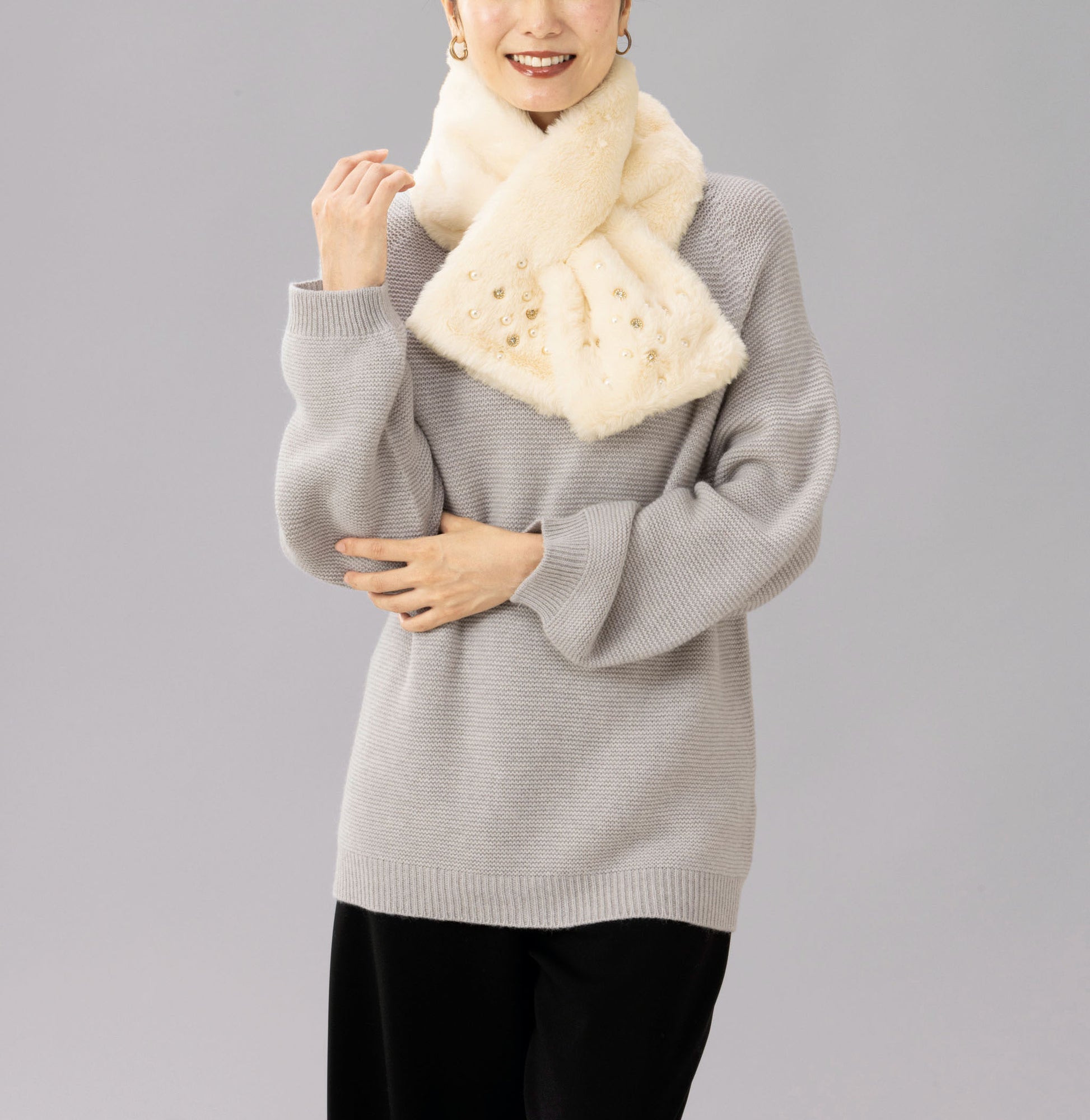 肌触りよく、ボリュームのあるあたたかいファーマフラーです。