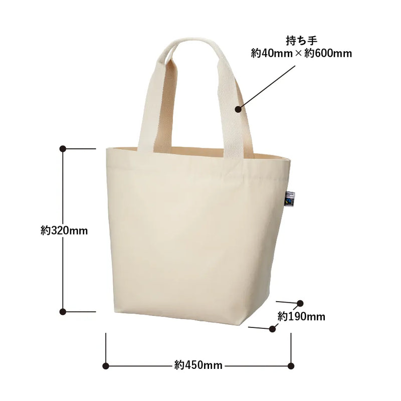 10オンスの厚みがあり丈夫で、お買い物バッグなどで普段使いにちょうどいい大きさです。