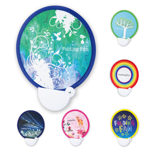 くるっと畳んでケースに収納することでコンパクトに持ち歩けるうちわです。フルカラーで完全オリジナルデザインで作成できるので、アーティストイベントの応援グッズなどに最適。