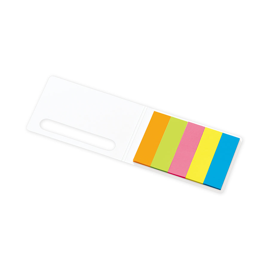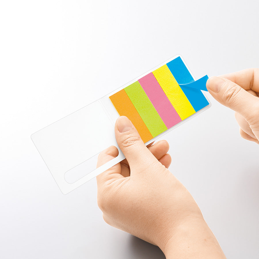 表紙は窓付きで、はっきりとした蛍光色のふせん紙が見えるデザインです。