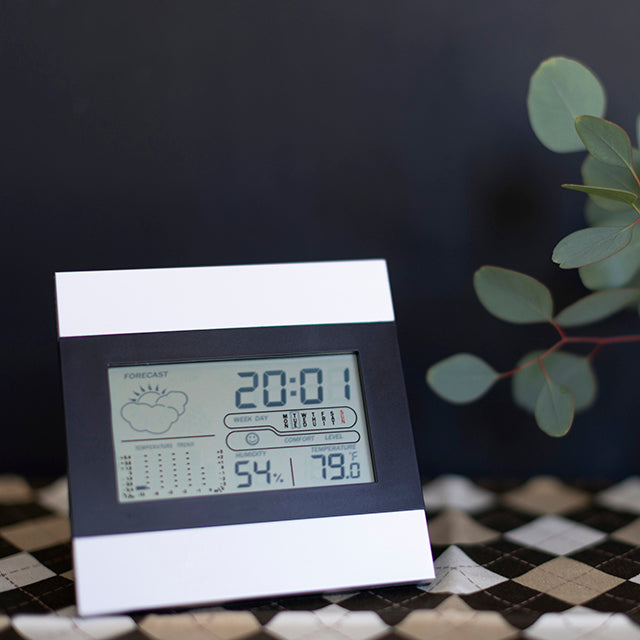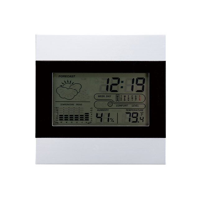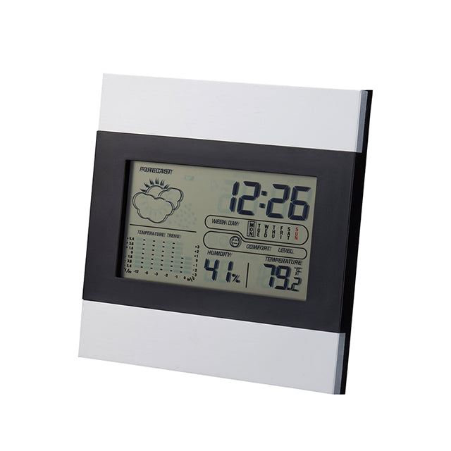 大きくて見やすい液晶表示が人気の、高級感あふれるアルミフレームの多機能天気予報時計