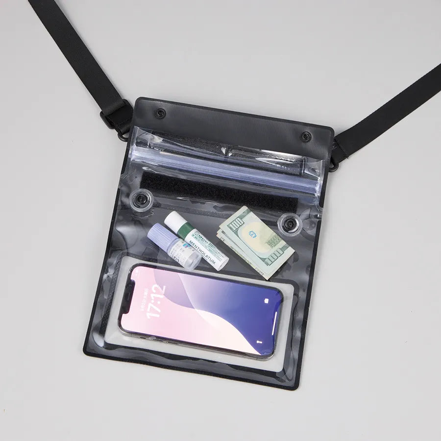 スマートフォン以外にも貴重品などの小物を一緒に収納することができます。