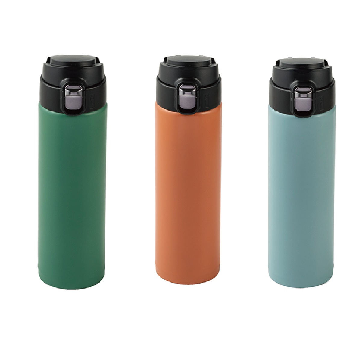 便利なワンタッチマグボトル。本体は滑りにくいマットコーティング仕上げ。氷も入れやすく、お手入れもしやすい広口タイプ。