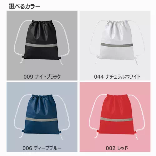 色は人気の4色展開となっており、加工も単色からフルカラーまで対応しております。暗闇で反射するリフレクター付ですので、防災グッズを入れ、非常持ち出し用リュックとしてもご使用頂けます。