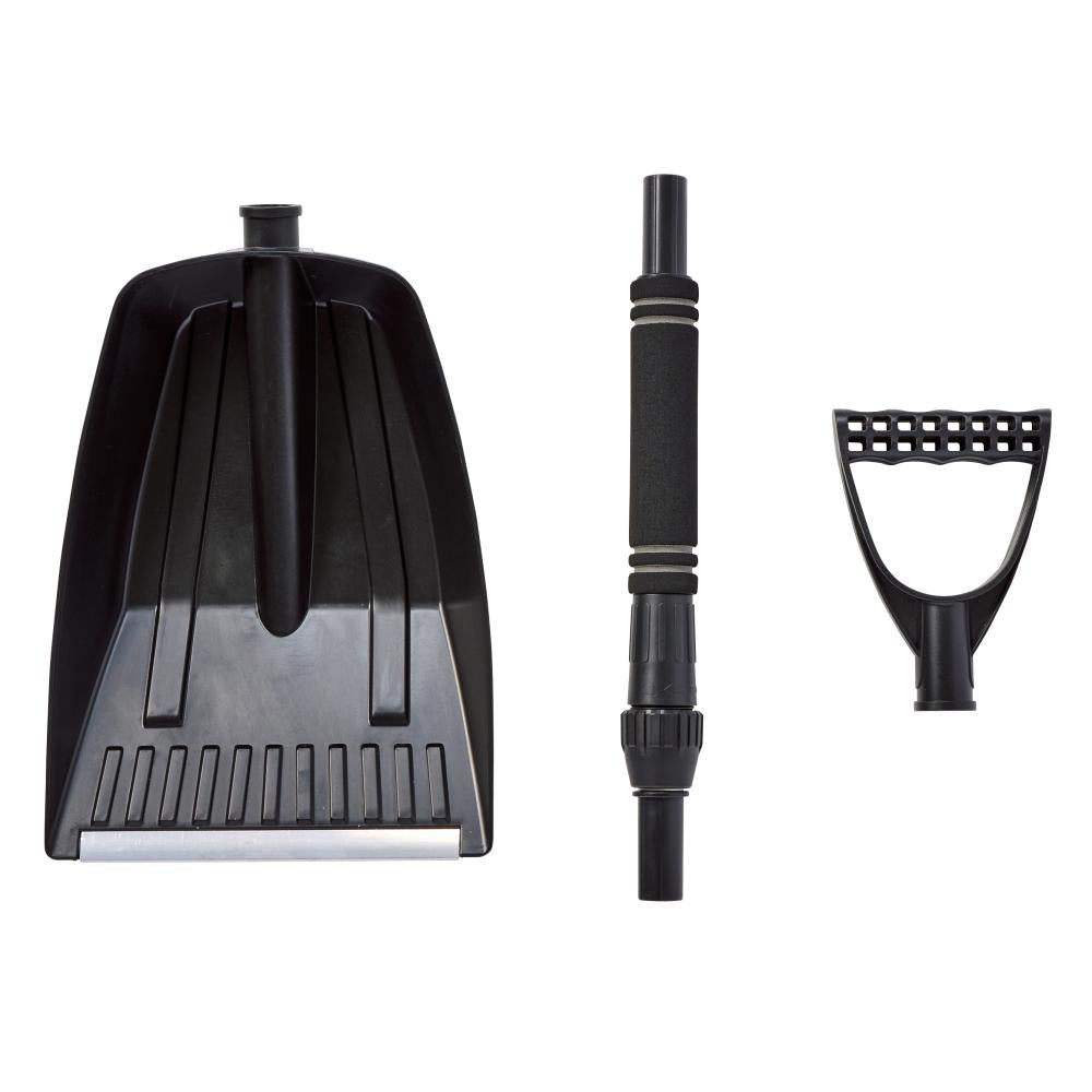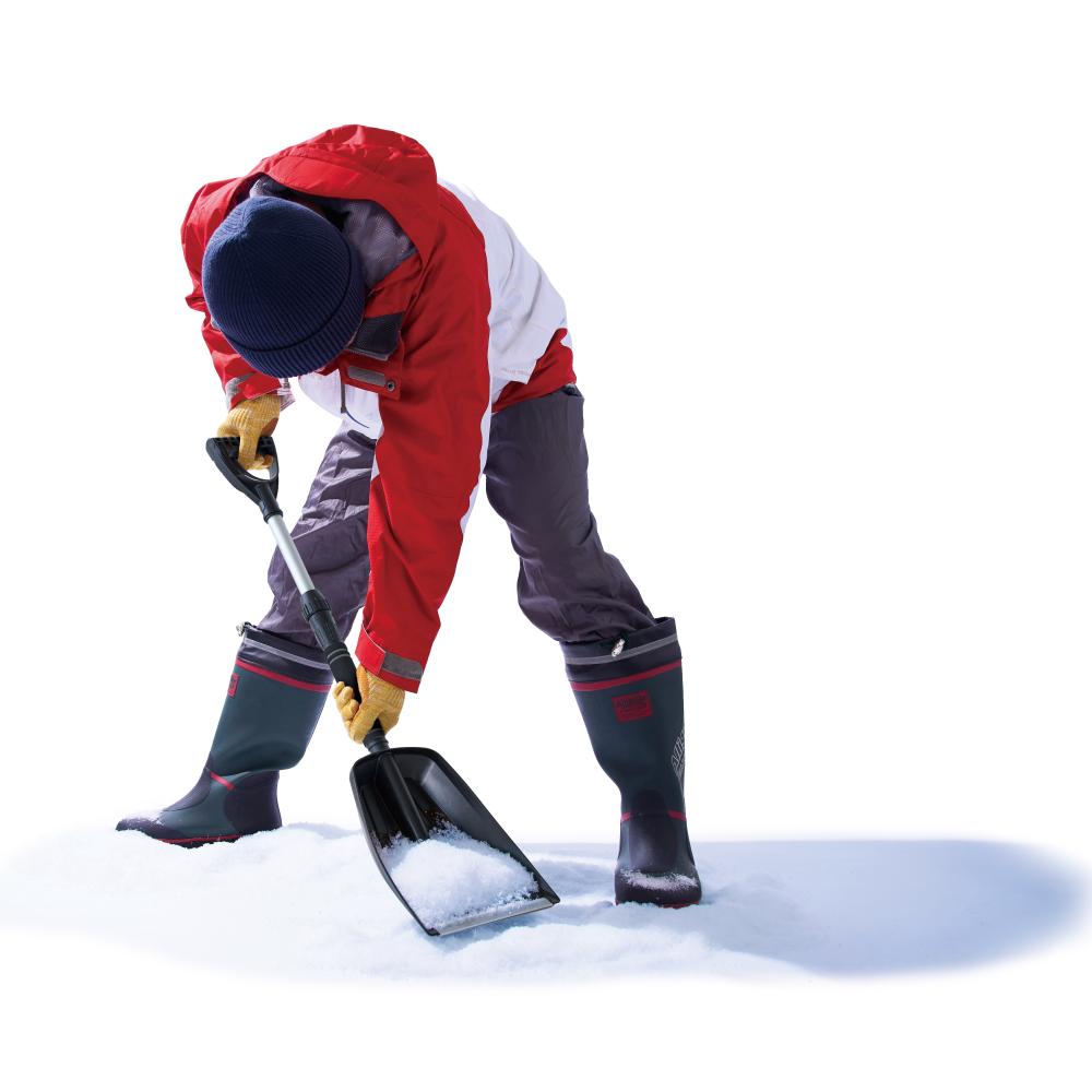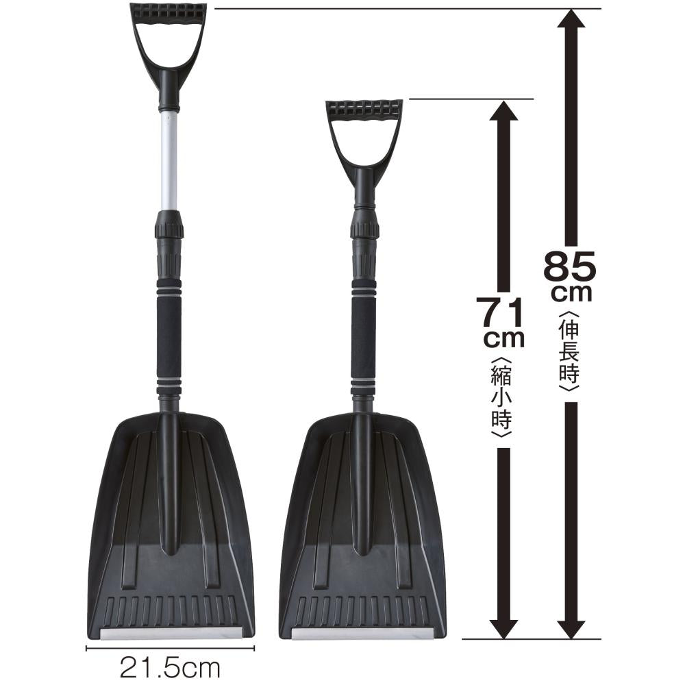 持ち手部分が約71~85cm伸縮します。雪がめったに降らない地域にこそ、車載に便利な組み立て&伸縮式!パーツをまとめておける巾着袋付き。雪かきのほか、庭いじりや地域の活動などの平時にも。