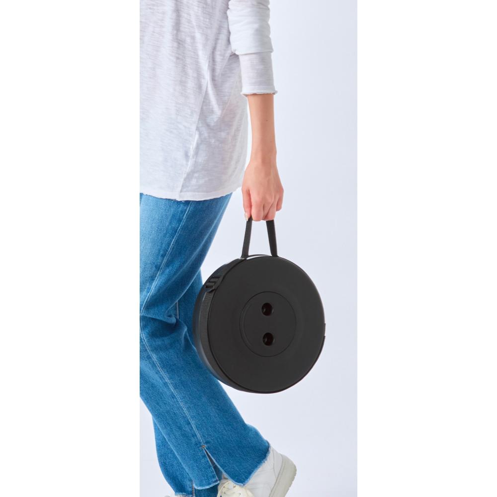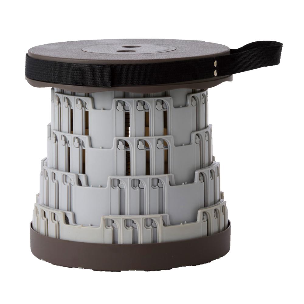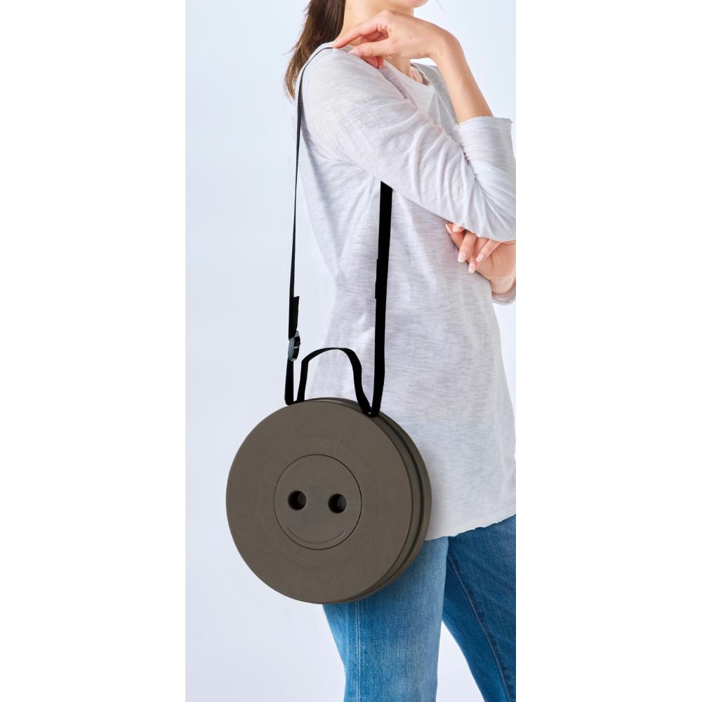 円錐型で安定感があり、視界も低くなりすぎずに座れます。蛇腹式でコンパクトにたためて、手持ち/ショルダーの2タイプの持ち手付き。テーマパークや大型イベントに行く時の必需品になりそう。