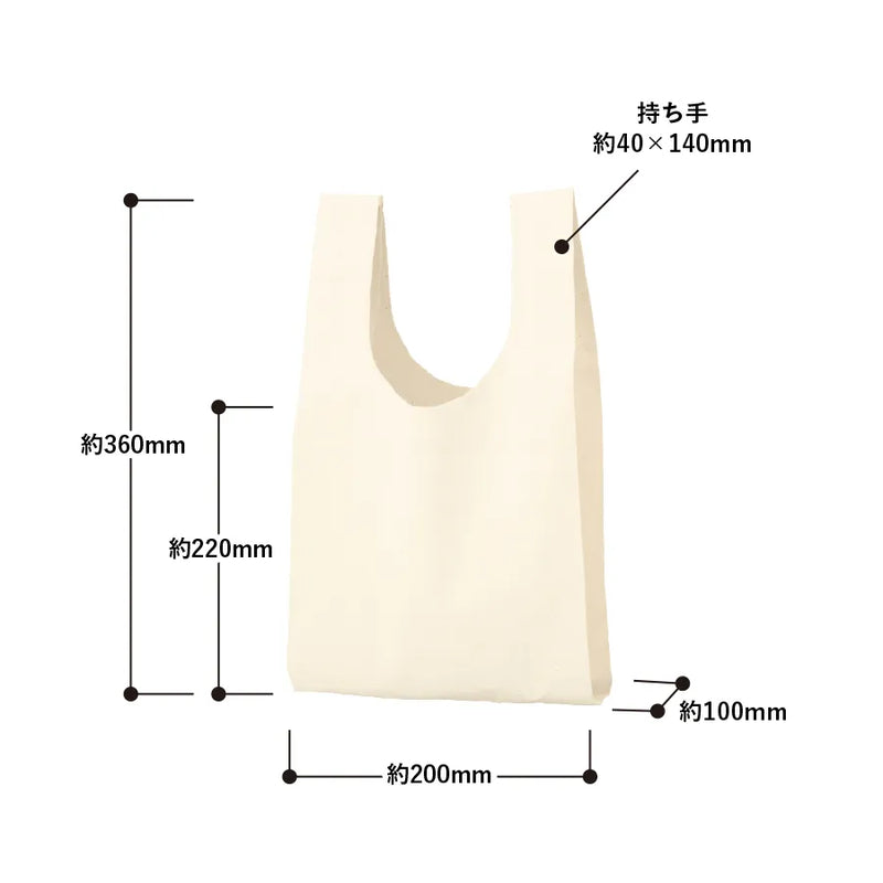 本体/約W200×H220(持ち手含む360)(mm) 持ち手/約W40×H140(mm) 折りたたみマチ/約100(mm)