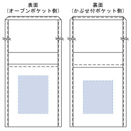 中身が透けにくい厚手コットン生地を使用。表面のオープンポケットと裏面のかぶせポケットで使い勝手抜群です。