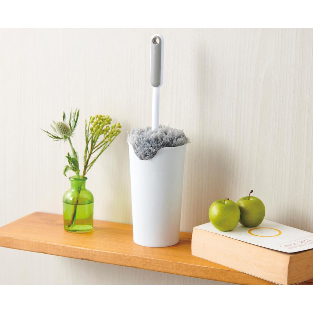 立てて置ける収納ケース付きなので出しっぱなしでもOK!ケースは名入れが映えるホワイトボディ、名入れが見える透明ポリ袋入りです。大掃除や新生活シーズンのノベルティに。