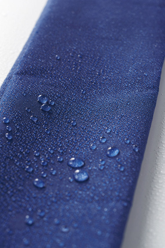 表面には水滴がみるみる落ちる撥水加工。使わないときはコンパクトに折りたためる便利なポーチです。
