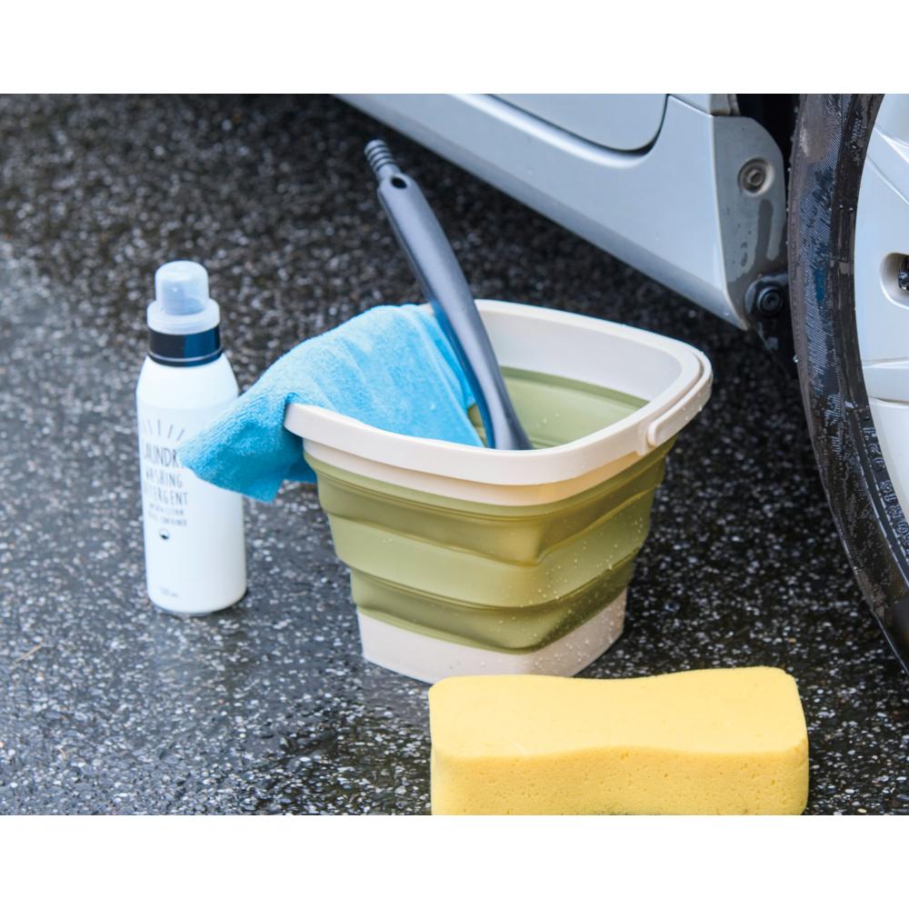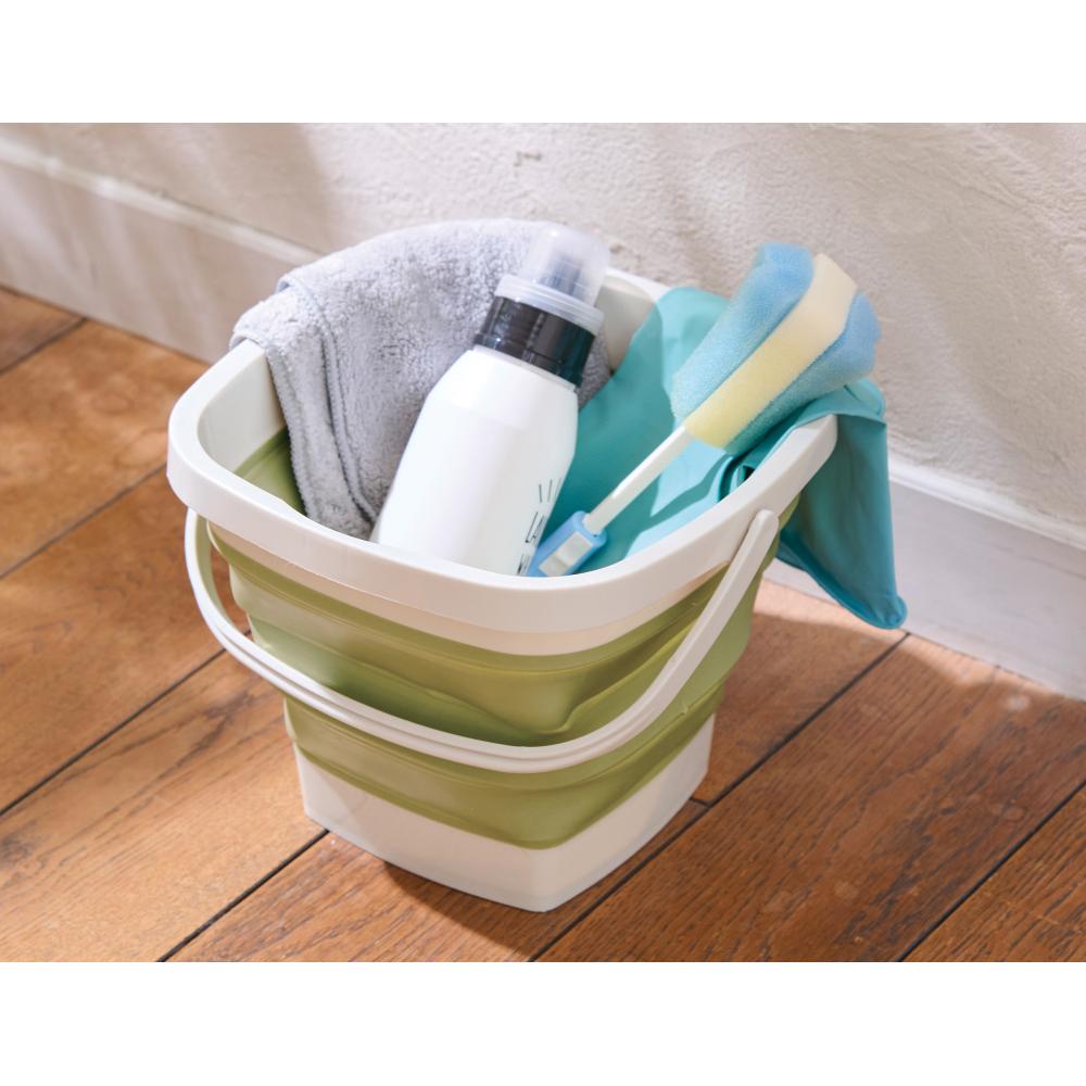 アウトドア・洗車・お掃除に大活躍!収納時に薄くたためるジャバラ式のバケツです