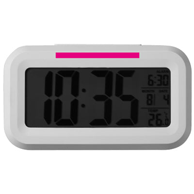 大きな画面ではっきり見やすいデジタル表示の置き時計。