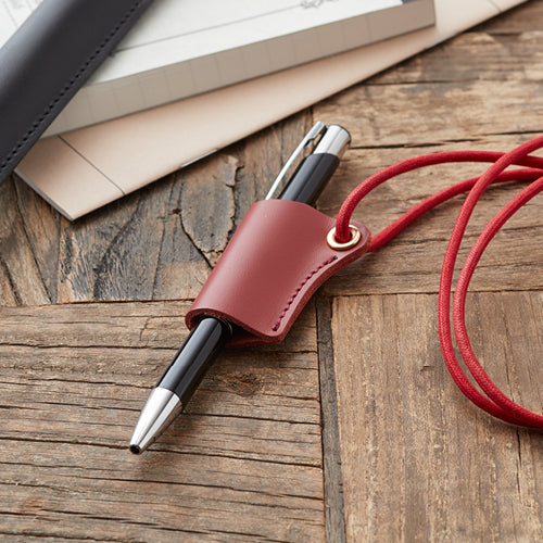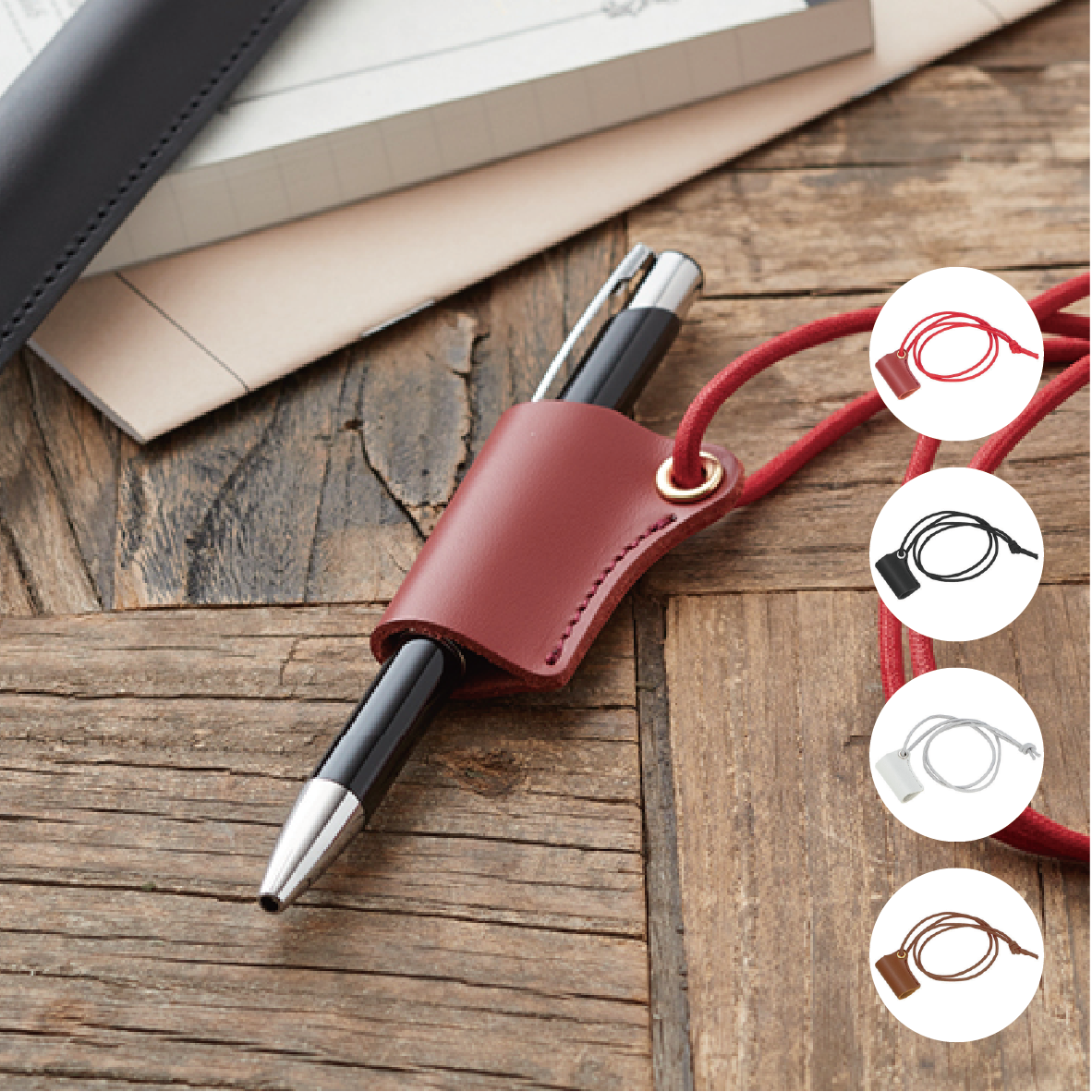 ストラップの先端のホルダーにペンを1本挿して首から下げることができます。