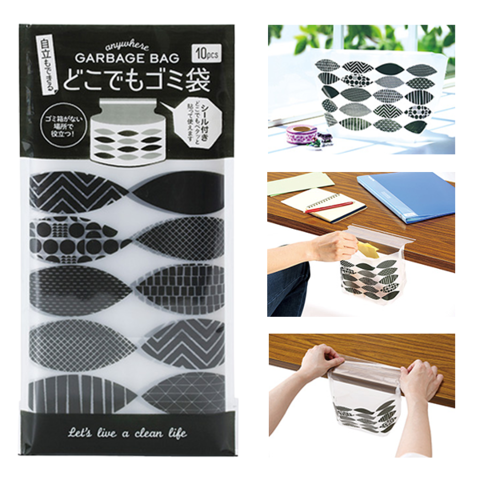 ペタっと貼れて、しっかり自立。どこでも使える便利な携帯ゴミ袋。