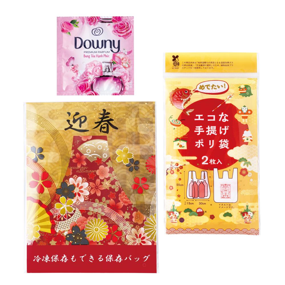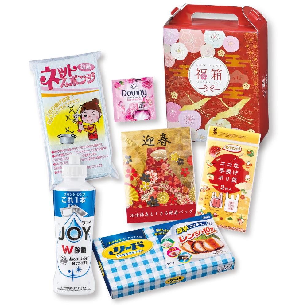 二羽の鶴が舞う優雅な化粧箱に納めた日用品の福箱です。