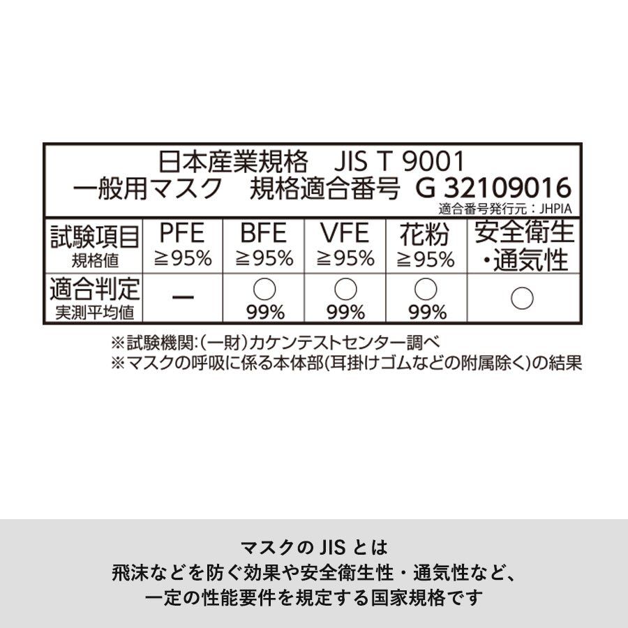日本産業規格JIS T 9001適合商品です。(一般用マスク 規格適合番号G32109016)