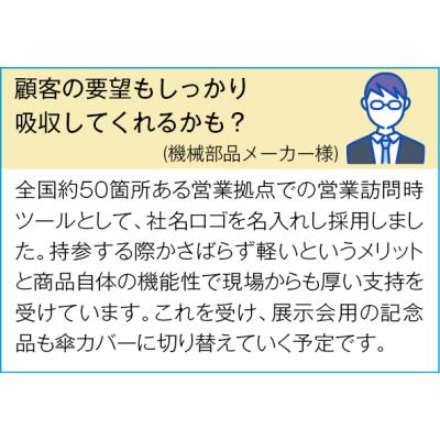 超吸水マルチ傘カバーは、マイクロファイバー製で吸水力抜群。傘カバー・ペットボトルホルダー・タオルと3通りの使い方ができ、濡れた折りたたみ傘や結露したペットボトルの収納に便利。ファスナーを全開にすればハンドタオルに変身し、濡れたバッグを拭くのにも使えます。名入れが目立つパッケージでPR効果が高く、イベントやキャンペーンで配布できるサイズも嬉しい特徴です。