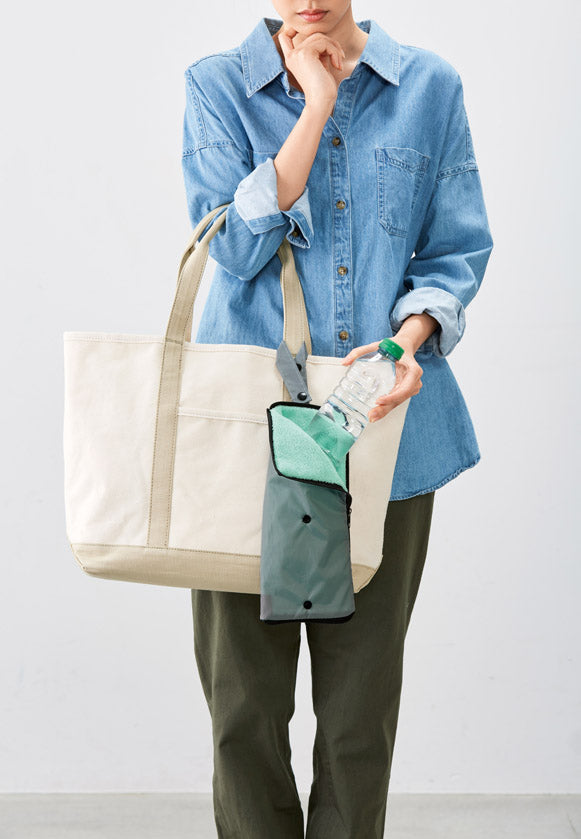 カバンにつけられるハンドルつきで、さらに傘だけでなくペットボトルホルダーとしてもお使いいただける傘ポーチです。