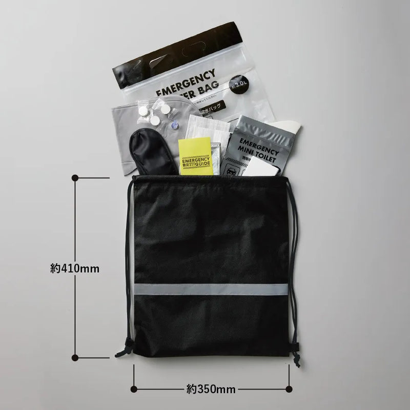 ・不織布リュック ・携帯トイレ×2pcs ・ウォーターバッグ ・アイマスク ・ネックピロー