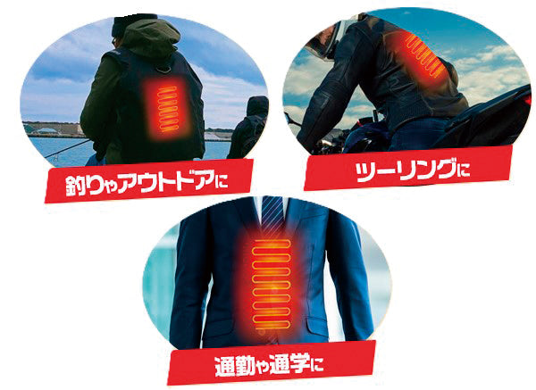 手持ちのウェアの下に入れて USBに繋ぐだけのお手軽防寒! 約35℃のほんのりあったか持続タイプ!