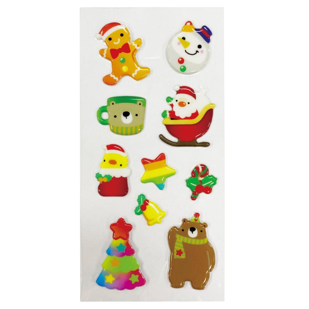 ぷくぷくした手ざわりのかわいいクリスマスのシールです。