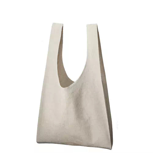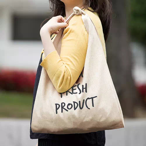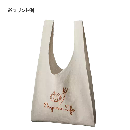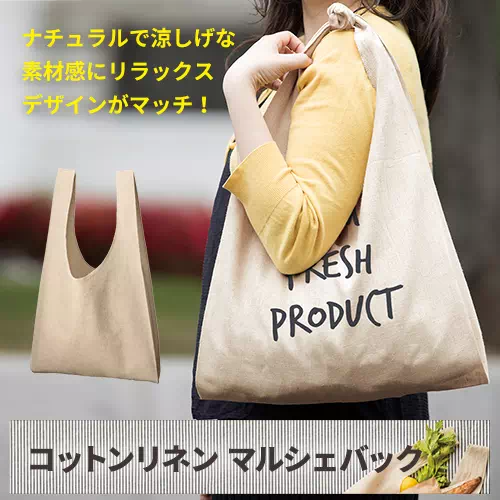 コットンとリネンを織りあわせることで、麻の素材感を残しながらしなやかな風合いに仕上げました。素朴な天然素材の風合いは、オーガニックコスメや食料品店のパッケージとしてもおすすめ。カサ高いものもすっぽり収まるマルシェバッグは、気取りすぎないリラックスデザインが爽やかな素材感にマッチします。サラッと持つとオシャレに決まるトートバッグです。1色プリントでロゴを入れるだけでも、素材に遊び心がある為インパクトのあるアイテムです。