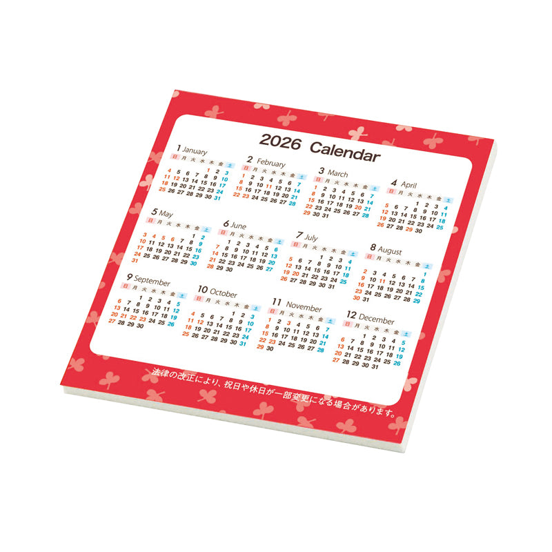 デスクなどに常備しておくと重宝するメモパッド。カレンダーも付いており、年末年始の挨拶回りに◎