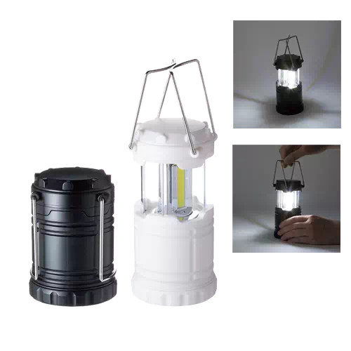 ハンドルを引き上げると自動点灯3面COBが明るく照らすランタン
