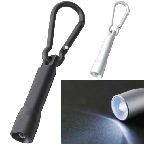 便利なカラビナ付でバッグなどに取り付けて持ち歩けるライト