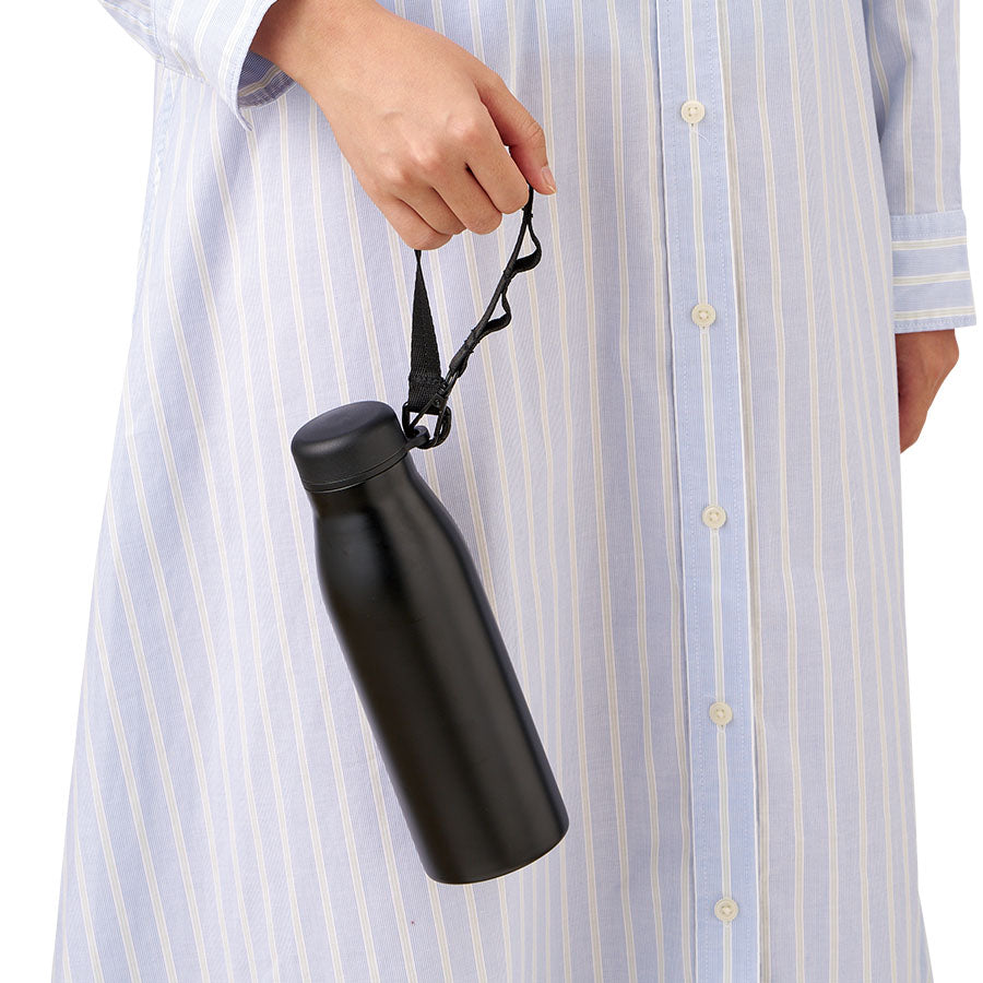 小物を引っ掛けられるループがついたショルダー付きボトルです。