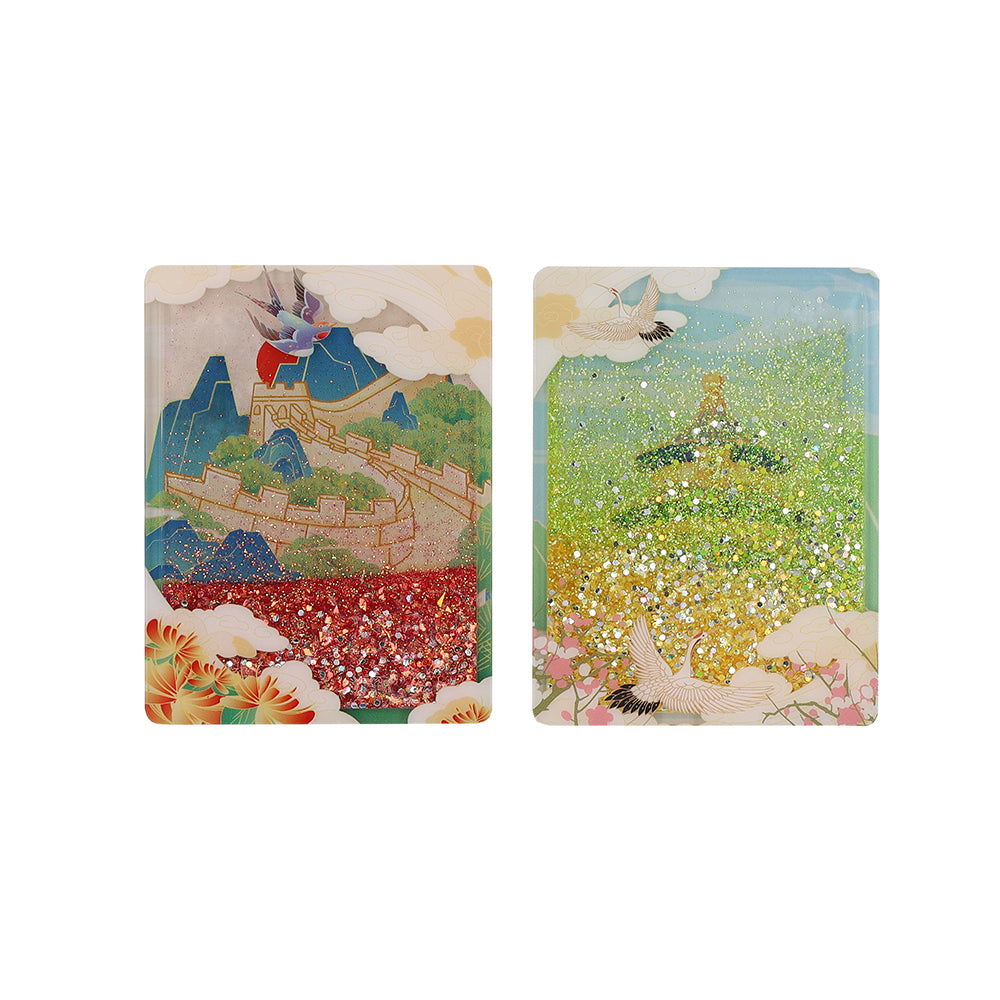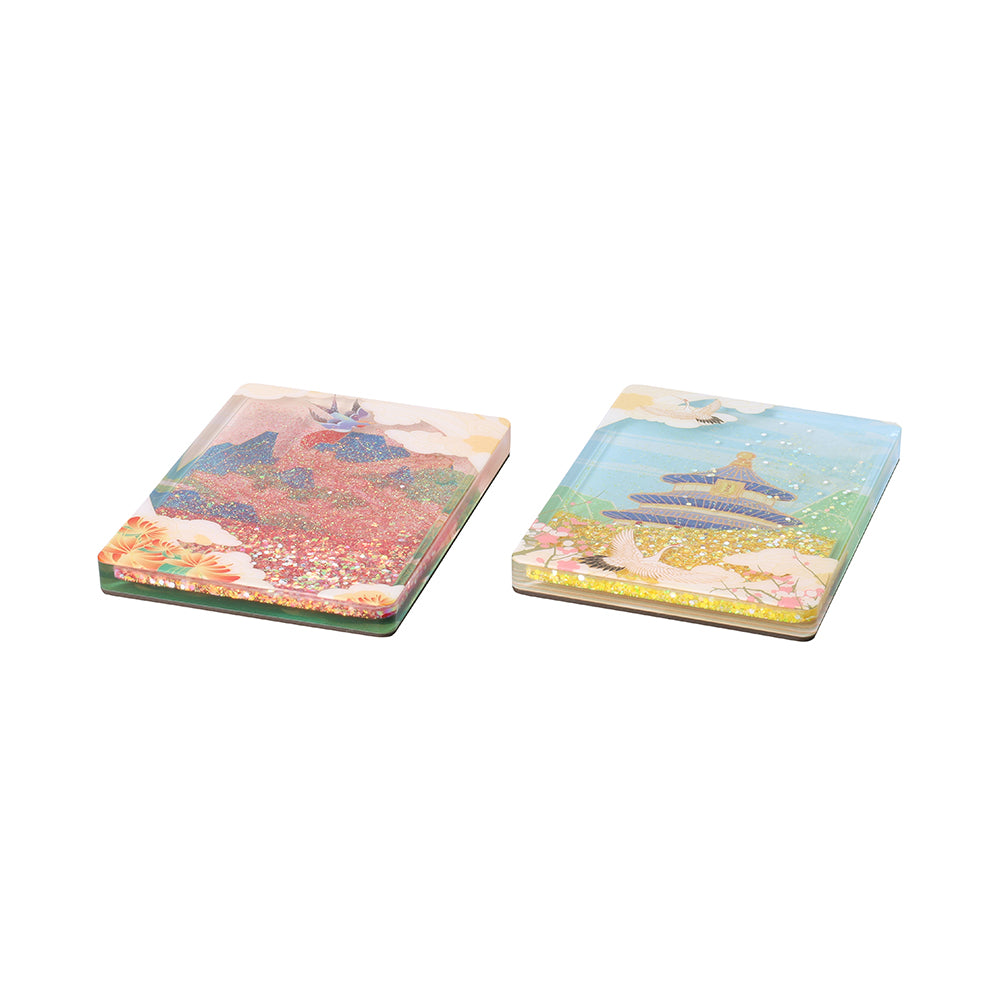 中の液体やラメ・パーツで静止物では出せない動きのある演出ができ、キャラクター・ロゴ・観光地デザインとの相性が抜群。