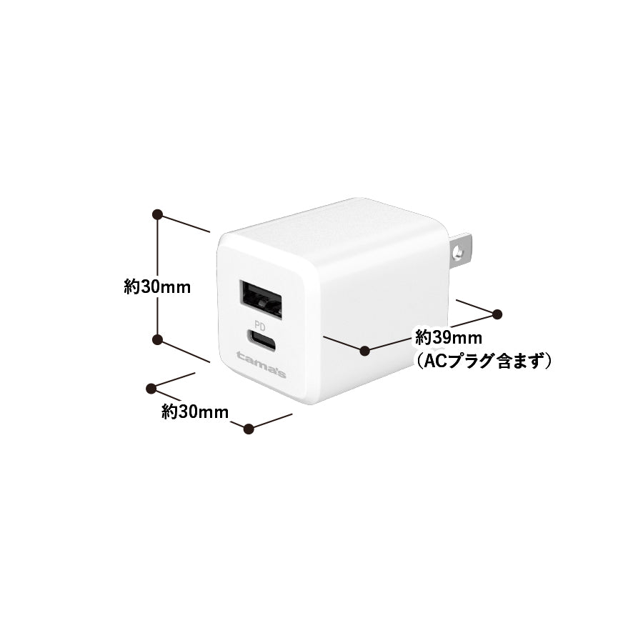最大20W(単体使用時)のUSB PD対応USB Type-Cポートと最大18W(単体使用時)のUSB-Aポートを搭載しております。
