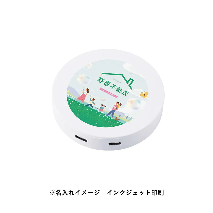 2500mAhのめずらしい容量サイズと、ころんとした円形フォルムがポイントです。