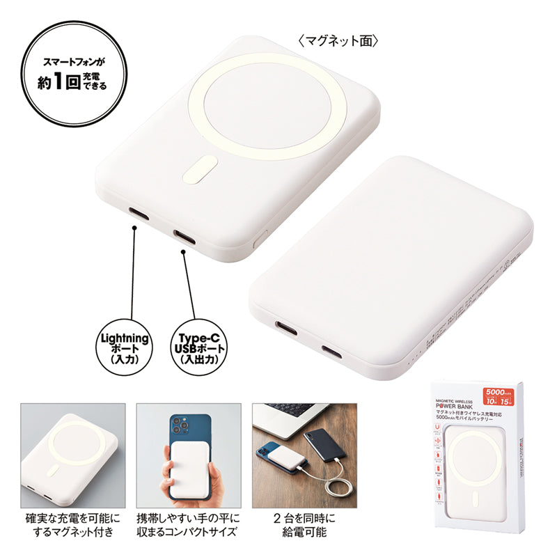 ワイヤレス充電対応マグネット式モバイルバッテリー5000
