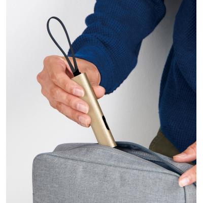 ON/OFF問わず持ち歩くものだから、便利かつスタイリッシュでありたいもの。給電ケーブルとコネクターは本体に収納できるのでスッキリフォルムで携帯できます。本体カラーは、使う人の格を上げてくれる上品なシャンパンゴールド。もちろん名入れ可能です。