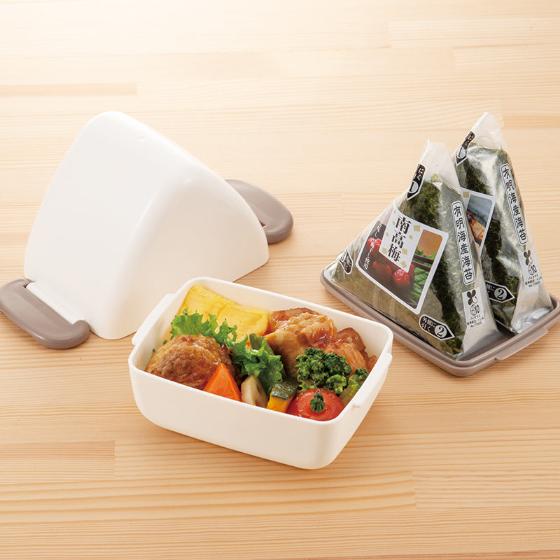 コンビニのおにぎりが2個入り、おかずも入るケース付き。