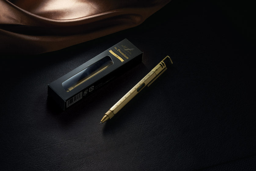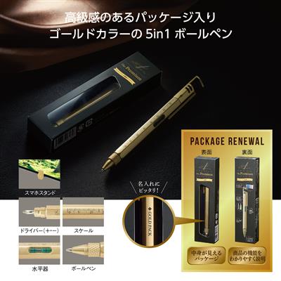 高級感のあるパッケージ入りの、ゴールドカラー5in1ボールペン