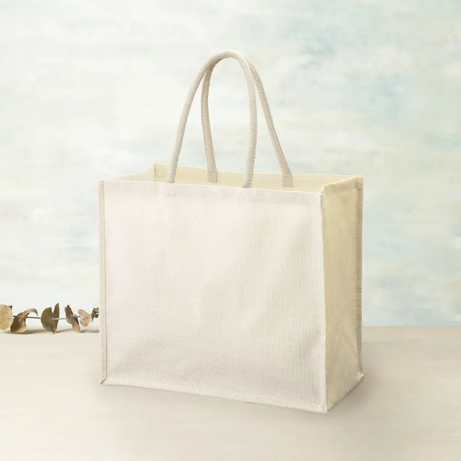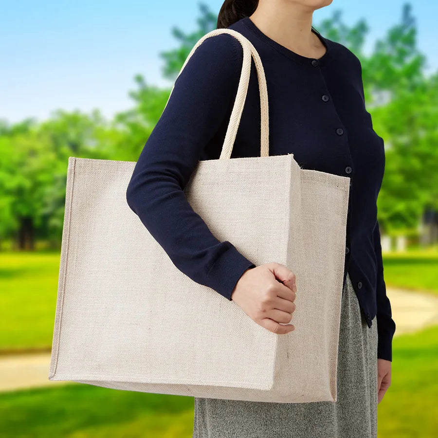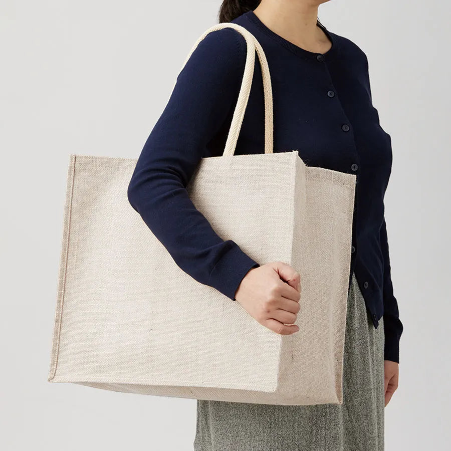 大容量タイプのジュートスクエアトートです。