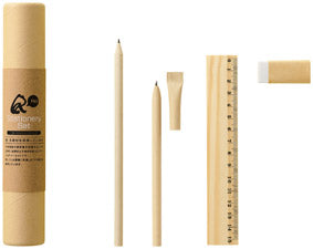 鉛筆/全長:173mm、定規/全長:157mm、ボールペン/全長:143mm、消しゴム/全長:34mm