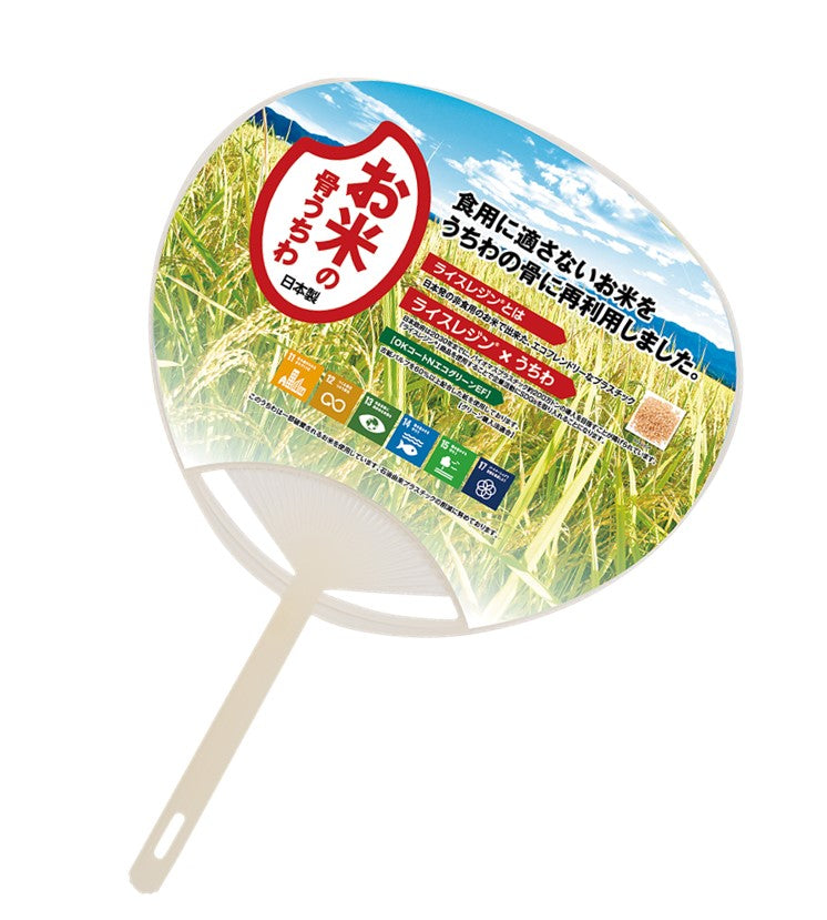プラスチックに非食用のお米を混ぜた「ライスレジン」で作ったエコなうちわです。