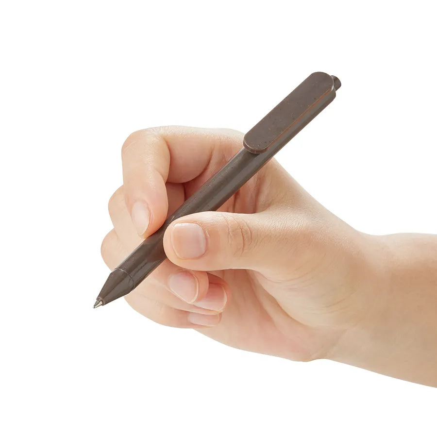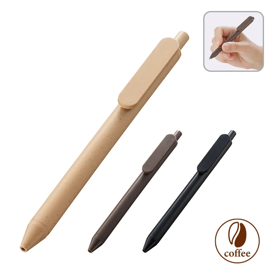 本来であれば廃棄されるはずのコーヒーを抽出した後に残る豆かすを再利用して、成型している環境に優しいボールペンです。
