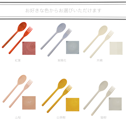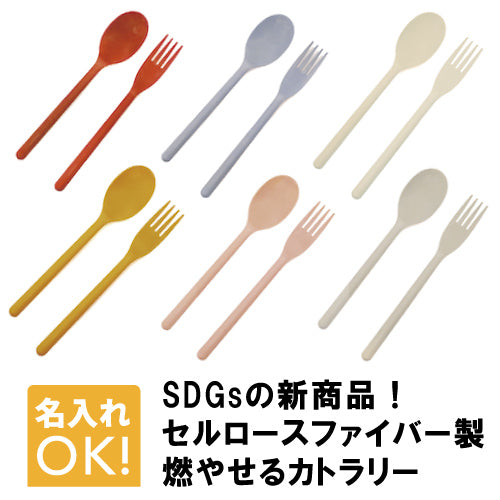 製品表記が「紙」の新しい素材でできたスプーン&フォークセット