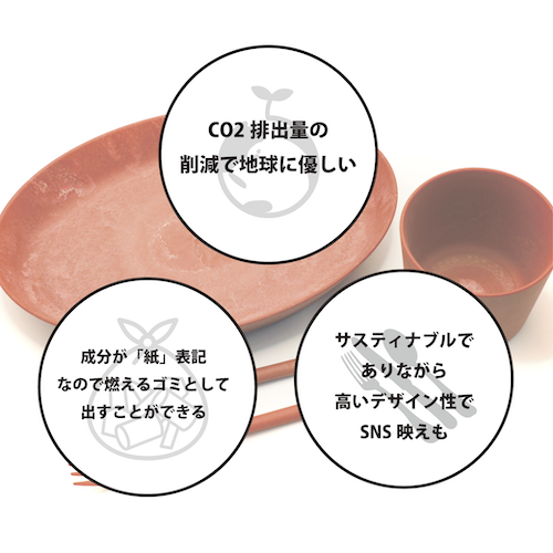 石油由来の樹脂使用を大きく削減し、CO2の排出も大きく抑えたバイオマス素材でできているにも関わらず