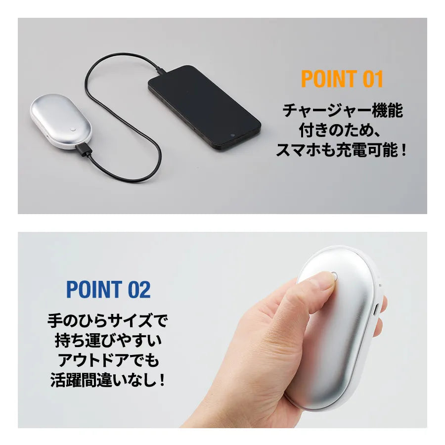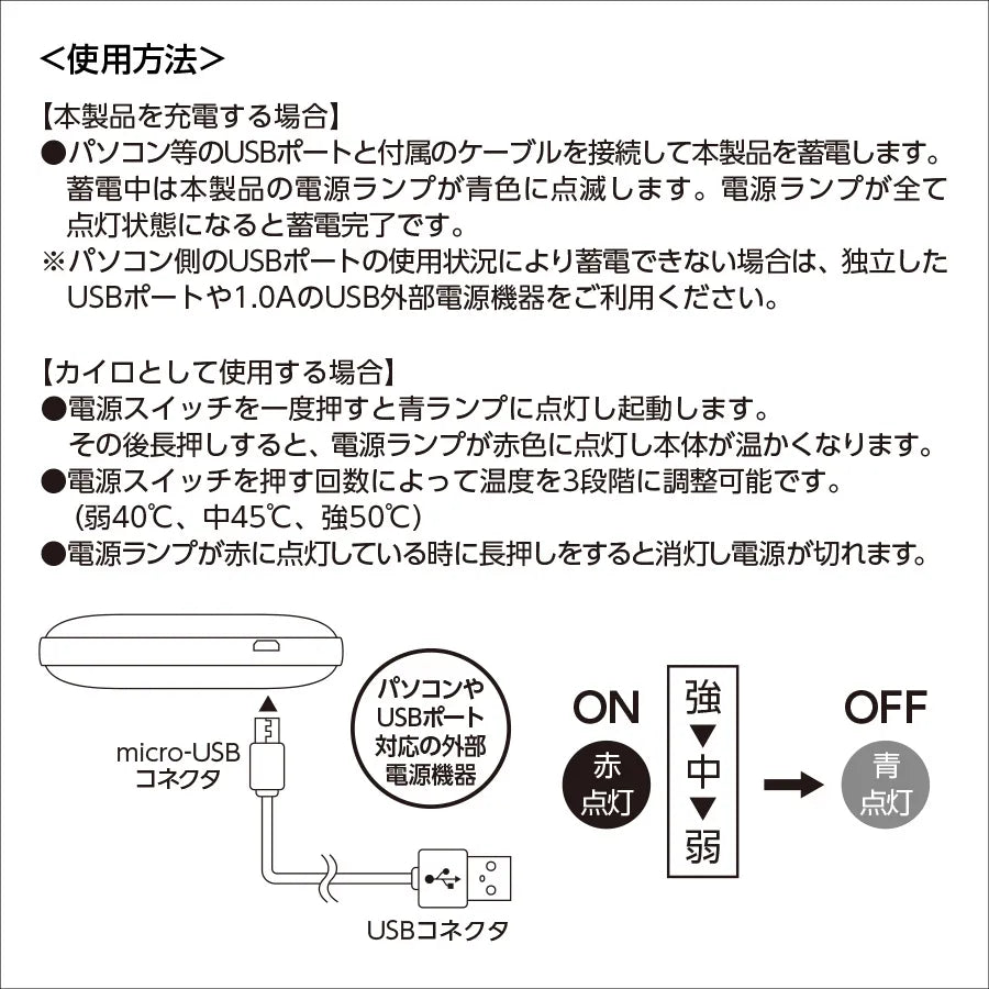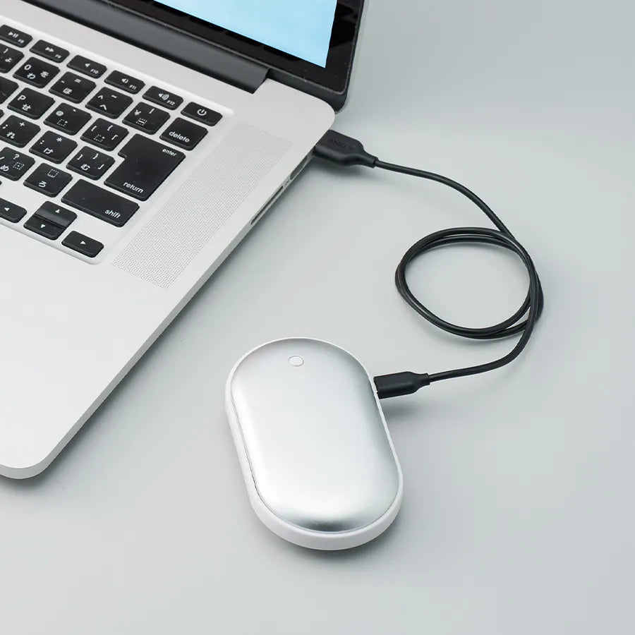 事前にUSBで本体を充電しておくことで、コードレスで温かくご使用いただけます。